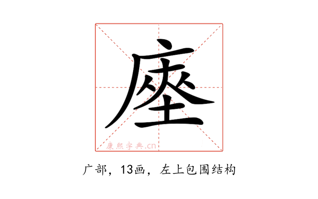 〔𢊃〕字是左上包围结构,可拆字为“广、𱖪”或“𢈙、土”。