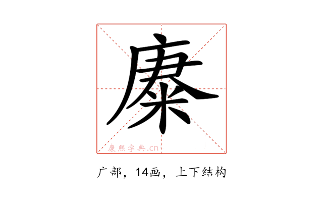 〔𢊪〕字部首是广部,总笔画是14画。