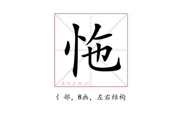 〔𢘬〕字部首是忄部,总笔画是8画。