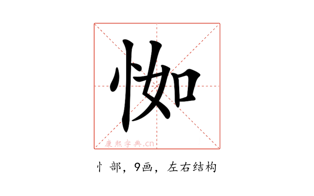 〔𢘾〕字是左右结构,可拆字为“忄、如”。