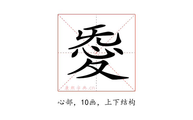 〔𢙴〕字拼音是(ài),部首是心部,总笔画是10画。