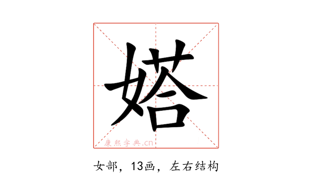〔㜓〕字是左右结构,可拆字为“女、荅”。
