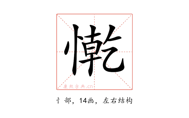 𢠥〕字是左右结构,可拆字为“忄、乾”。