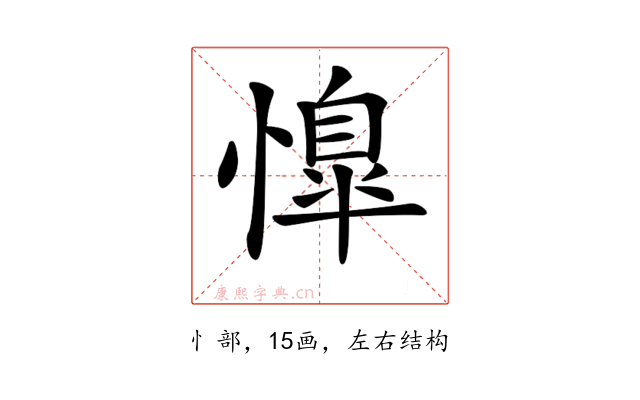 〔𢡋〕字部首是忄部,总笔画是15画。