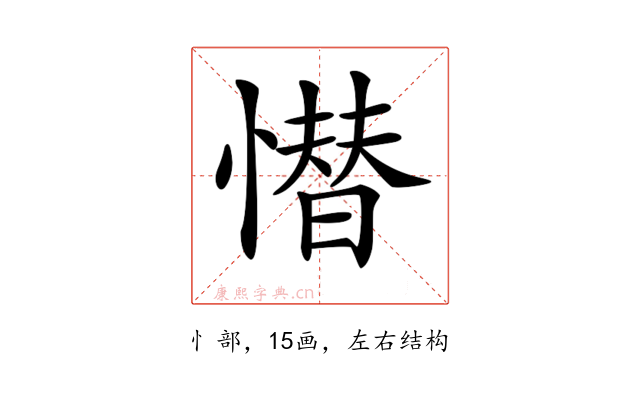 〔𢡚〕字是左右结构,可拆字为“忄、替”。