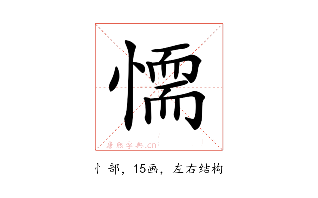 〔𢡼〕字部首是忄部,总笔画是15画。
