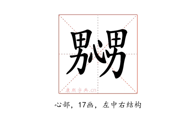 〔𢣲〕字是左中右结构,可拆字为“男、心、男”。