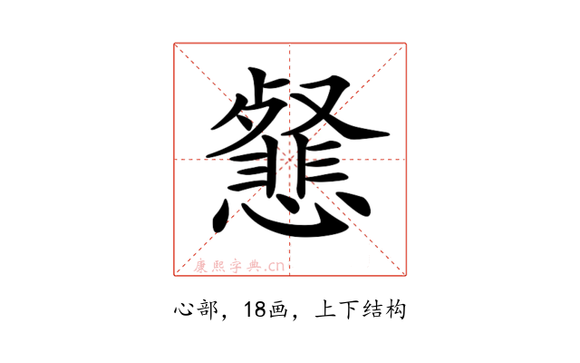 〔𢤕〕字部首是心部,总笔画是18画。
