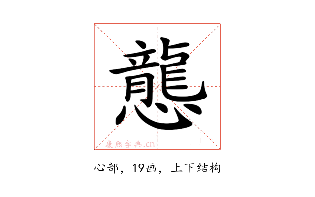 〔𢤲〕字是上下结构,可拆字为“龍、心”。