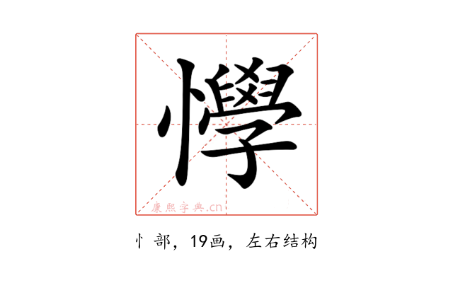 〔𢤾〕字是左右结构,可拆字为“忄、學”。