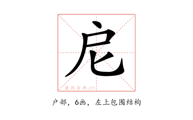〔𢨩〕字是左上包围结构,可拆字为“户、匕”。
