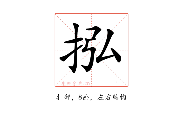 〔𢫠〕字是左右结构,可拆字为“扌、弘”。
