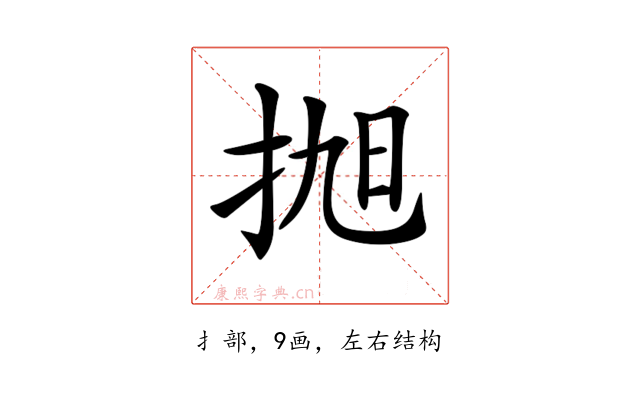 〔𢬐〕字是左右结构,可拆字为“扌、旭”。