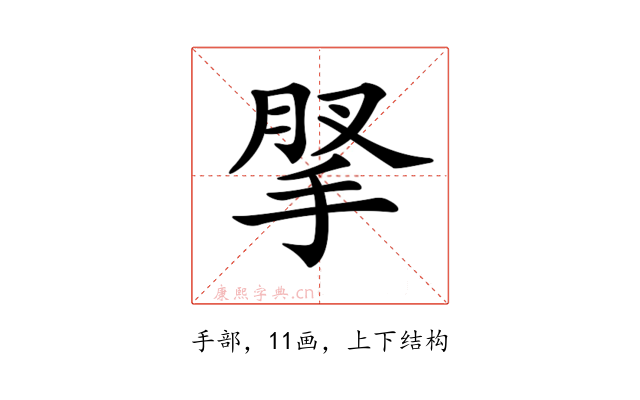 〔𢮗〕字部首是手部,总笔画是11画。