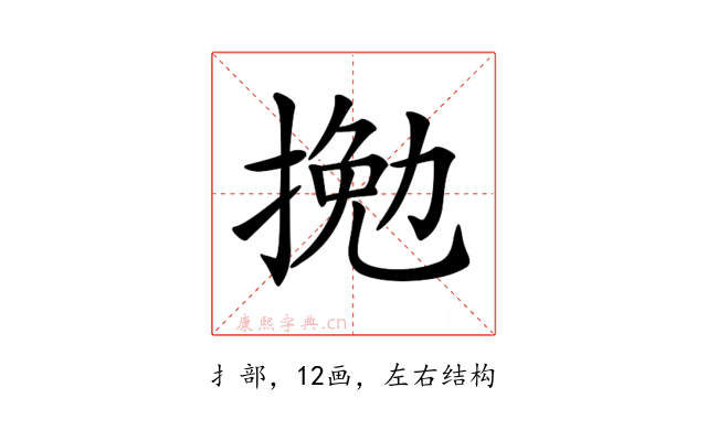 〔𢱍〕字是左右结构,可拆字为“扌、勉”。