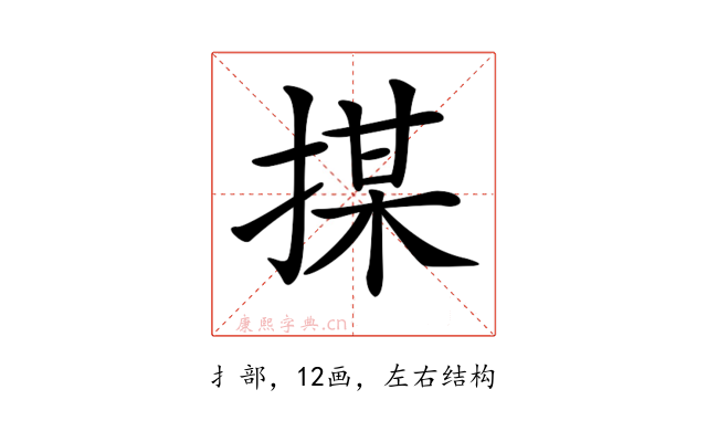 〔𢱖〕字部首是扌部,总笔画是12画。