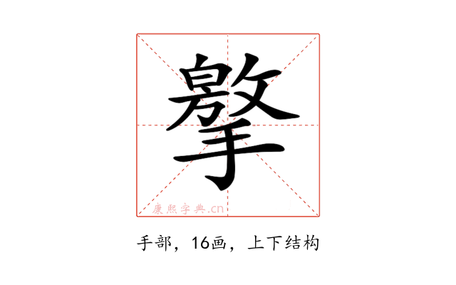 纠错〔𢶡〕字是多音字,拼音是(qiào、jiǎo),部首是手部,总笔画是16画。
