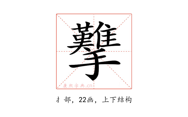 〔𢺋〕字部首是扌部,总笔画是22画。