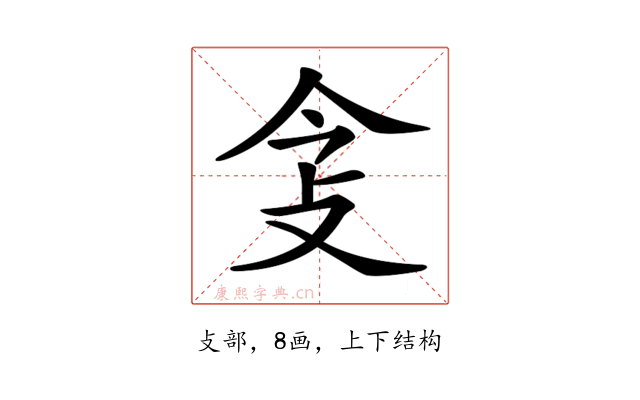 〔𢻶〕字是上下结构,可拆字为“今、攴”。