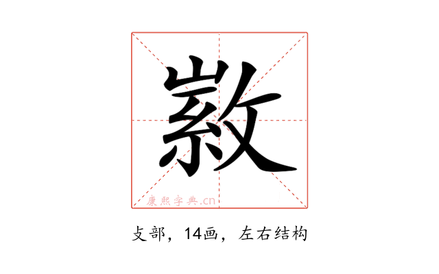 〔𢾰〕字部首是攴部,总笔画是14画。