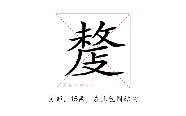 〔𢿍〕字部首是攴部,总笔画是15画。