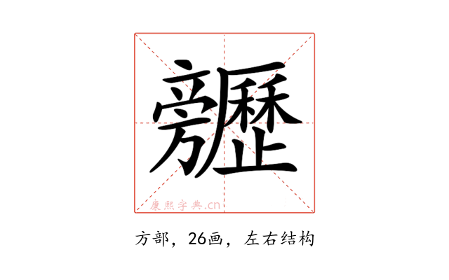〔𣄬〕字是左右结构,可拆字为“旁、歷”。