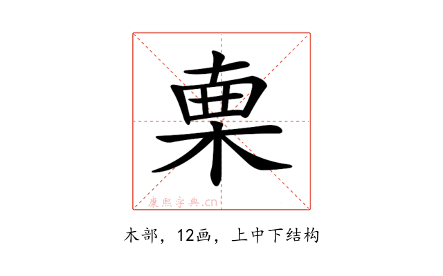 〔𣓟〕字部首是木部,总笔画是12画。
