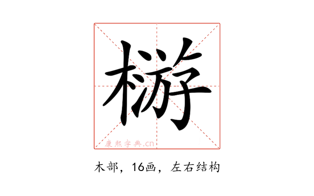 〔𣛦〕字是左右结构,可拆字为“木、游”。
