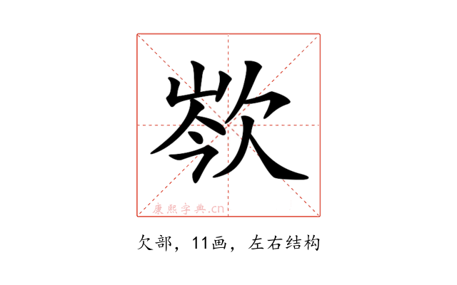 〔𣢽〕字部首是欠部,总笔画是11画。