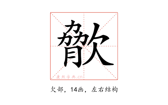 纠错〔𣣲〕字拼音是(xié),部首是欠部,总笔画是14画。