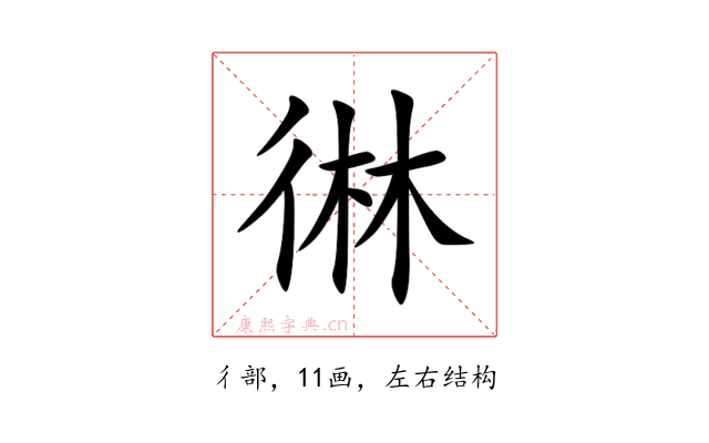 〔㣩〕字是左右结构,可拆字为“彳、林”。