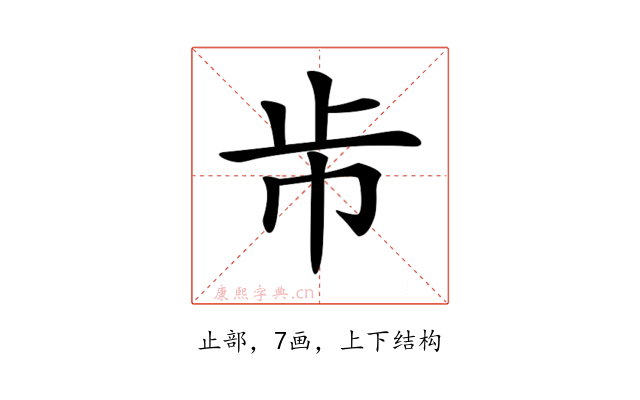 纠错〔𣥈〕字部首是止部,总笔画是7画。
