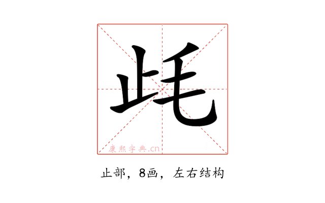 〔𣥡〕字是左右结构,可拆字为“止、毛”。