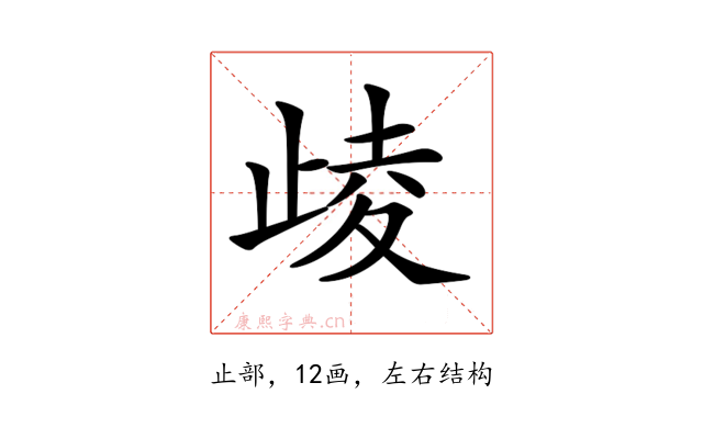 〔𣥻〕字是左右结构,可拆字为“止、夌”。