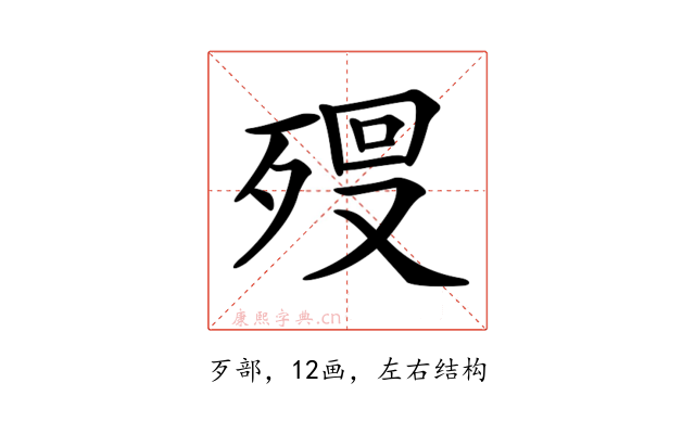 〔𣨨〕字部首是歹部,总笔画是12画。