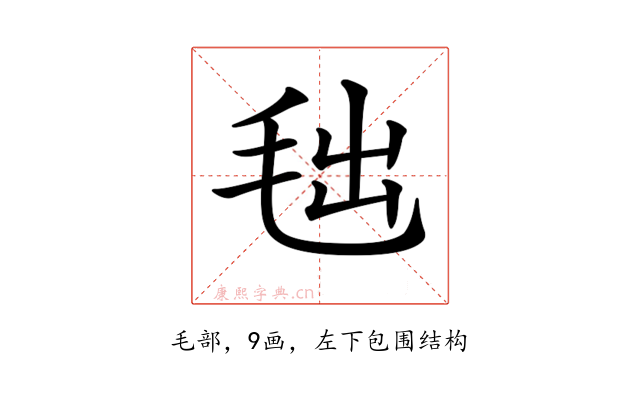〔𣭑〕字是左下包围结构,可拆字为“毛、出”。
