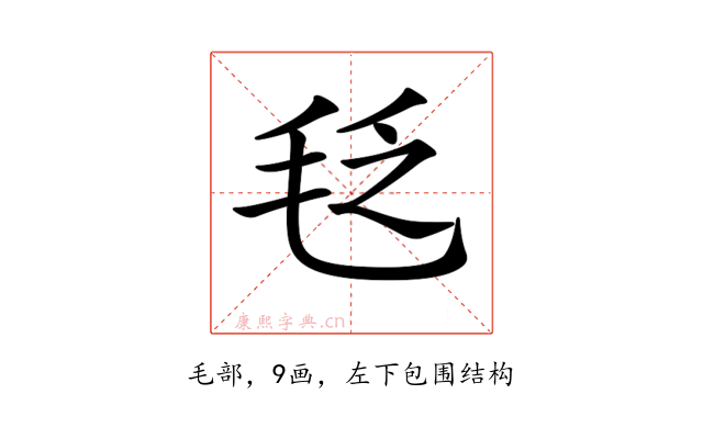 〔𣭛〕字部首是毛部,总笔画是9画。