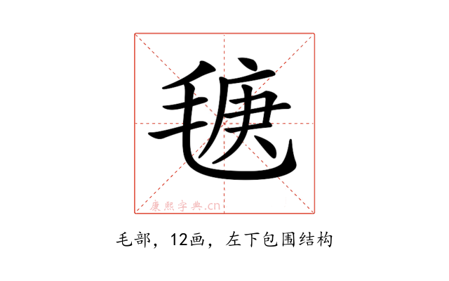 〔𣮣〕字部首是毛部,总笔画是12画。
