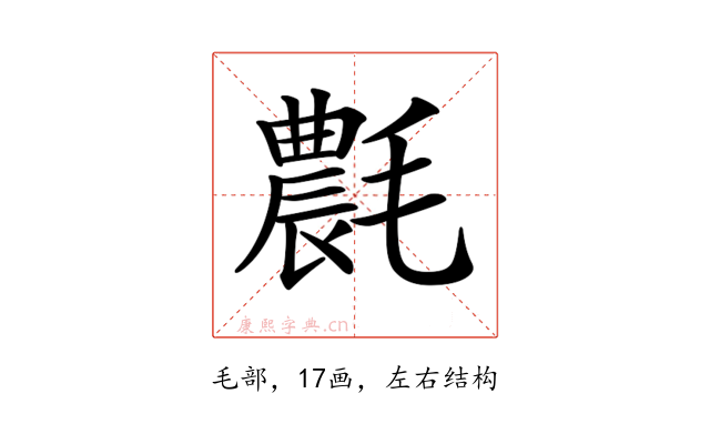 〔𣰊〕字部首是毛部,总笔画是17画。