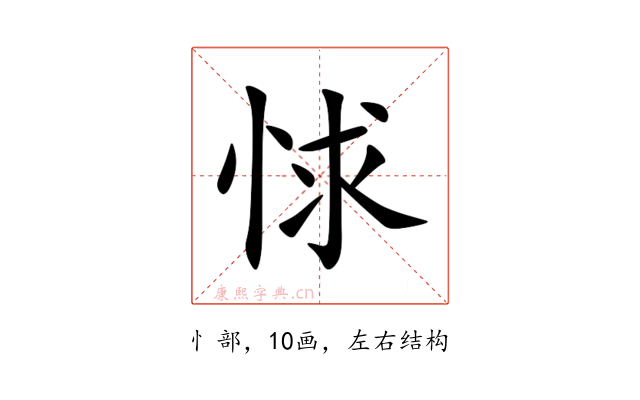 纠错〔㤹〕字拼音是(qiú),部首是忄部,总笔画是10画。