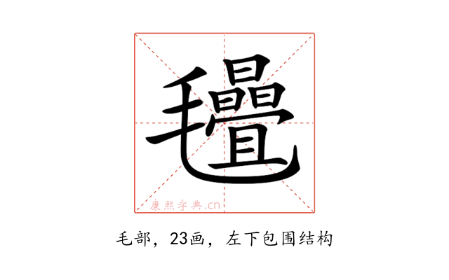 〔𣱁〕字是左下包围结构,可拆字为“毛、曡”。