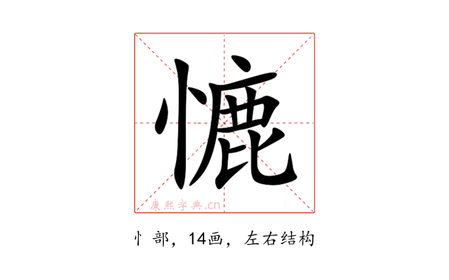 〔㦇〕字是左右结构,可拆字为“忄、鹿”。