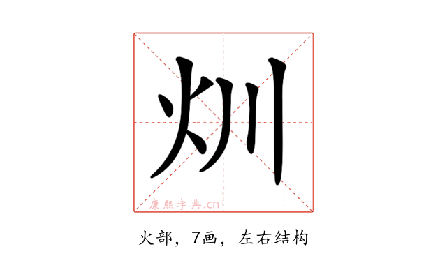 〔𤆑〕字是左右结构,可拆字为“火、川”。