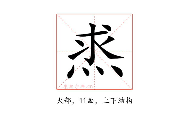 〔𤈿〕字拼音是(qiú),部首是火部,总笔画是11画。