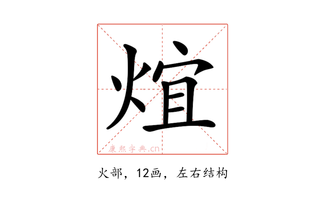 〔𤊃〕字是左右结构,可拆字为“火、宜”。