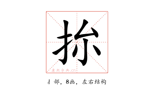 〔㧠〕字是左右结构,可拆字为“扌、厼”。