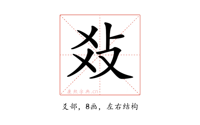 〔𤕝〕字是左右结构,可拆字为“爻、攴”。