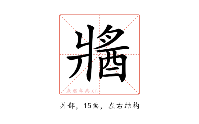 〔𤖕〕字部首是爿部,总笔画是15画。