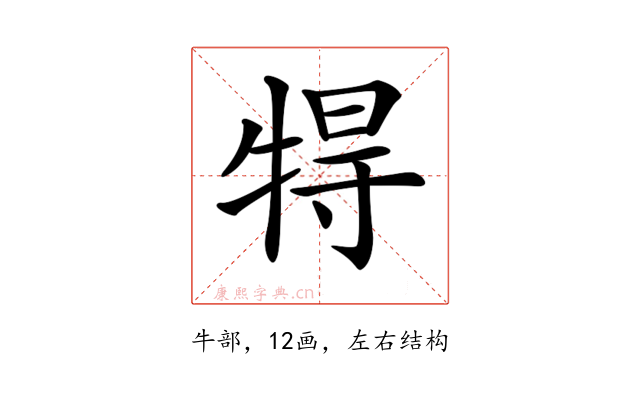〔𤙰〕字拼音是(tè),部首是牛部,总笔画是12画。