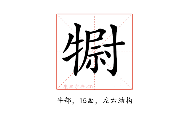 〔𤛌〕字部首是牛部,总笔画是15画。